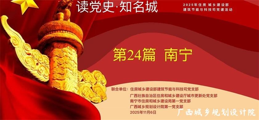 为深入贯彻落实习近平总书记关于历史文化保护传承的重要指示精神,推动党史学习教育常态化、长效化,2025年11月6日,住房和城乡建设部建筑节能与科技司党支部主办,广西壮族自治区住房城乡建设厅城市更新处党支部、南宁市住房城乡建设局第一党支部、我院第一党支部联合承办的第24期“读党史·知名城”线上联合党建活动成功举办。
