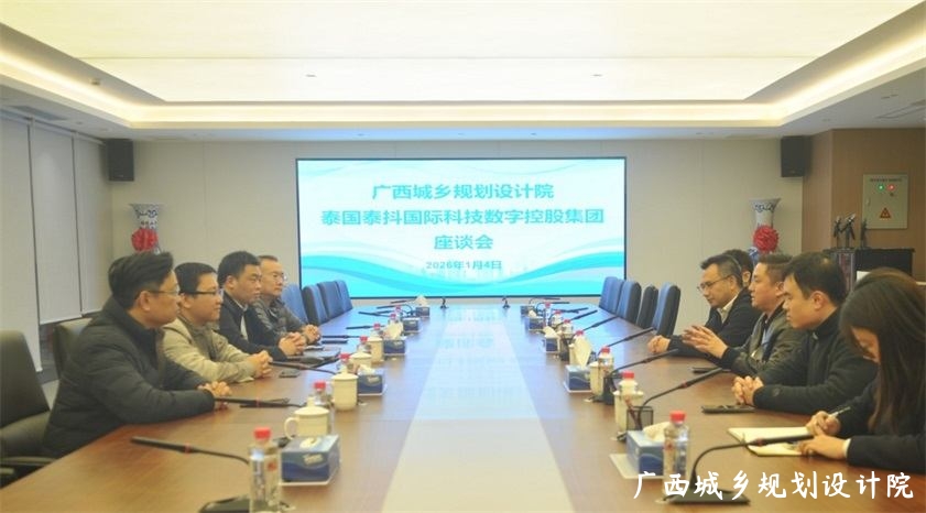 2026年1月4日,我院战略合作伙伴——泰国泰抖国际科技数字控股集团(以下简称“泰抖集团”)董事长林建忠先生会同中国银行股份有限公司广西壮族自治区分行(以下简称“中国银行”)、中信银行股份有限公司南宁分行(以下简称“中信银行”)相关领导共同莅临我院座谈交流,我院党委书记吴嘉佳,院长、党委副书记许维超,副院长徐克翔,泰国分院院长兼东盟产业发展研究院院长陈智波等同志参加座谈交流。