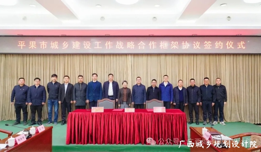 2026年2月12日上午,我院与平果市人民政府签署《平果市人民政府和广西壮族自治区城乡规划设计院关于城乡建设工作的战略合作框架协议》。在双方领导嘉宾的共同见证下,签约仪式在平果市行政信息中心大楼圆满举行。